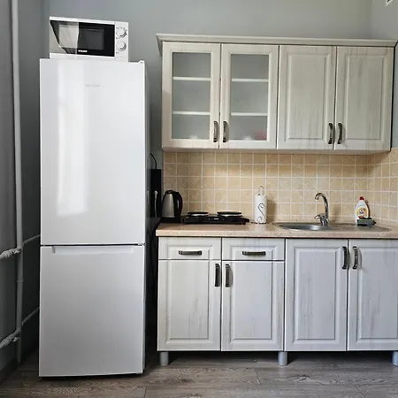 Для вашего удобства обустроена кухня с холодильником, варочной панелью и посудомоечной машиной. Автобусная остановка "ул. Колумна" находится в 5 минутах ходьбы от апартаментов.